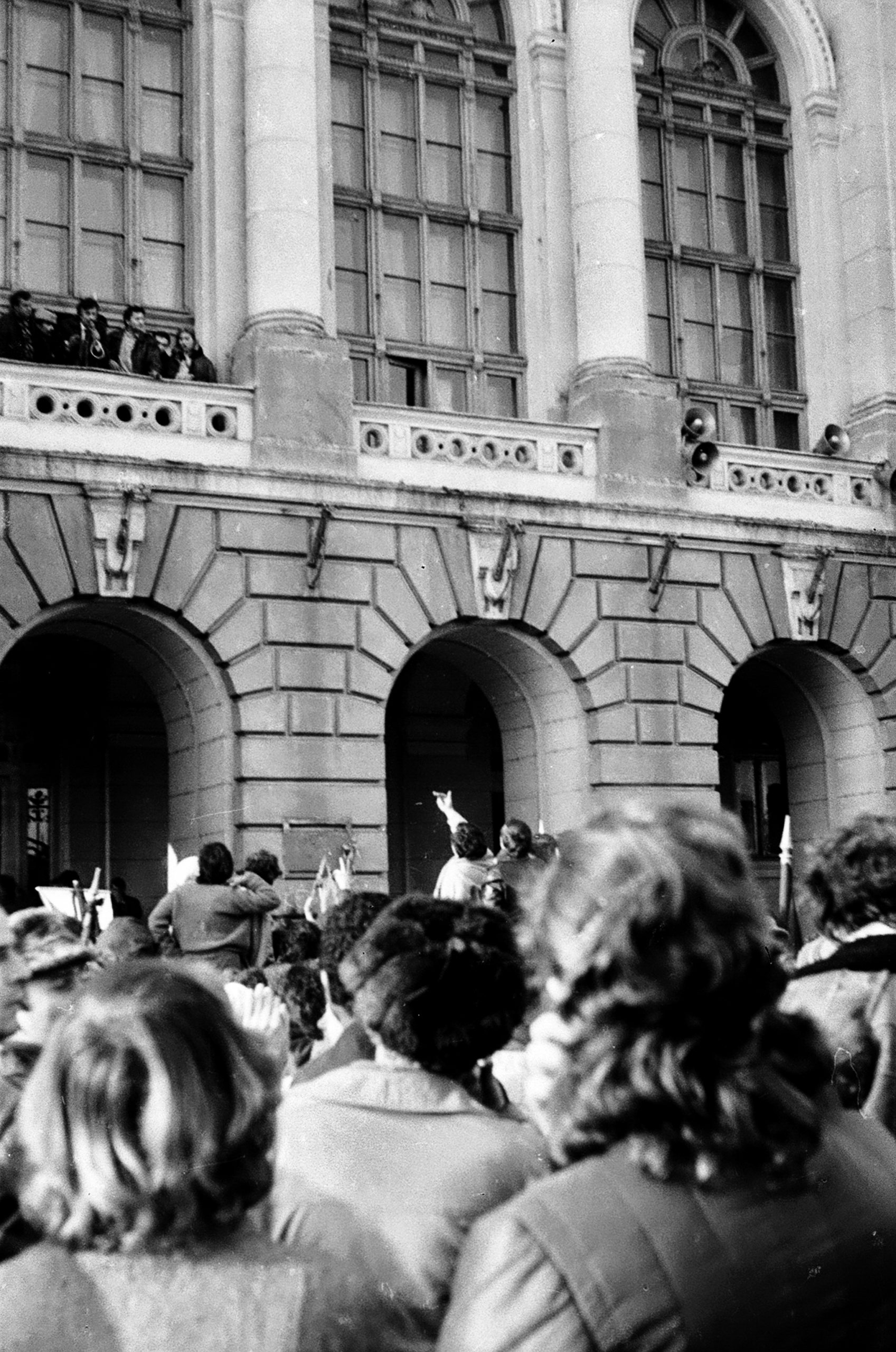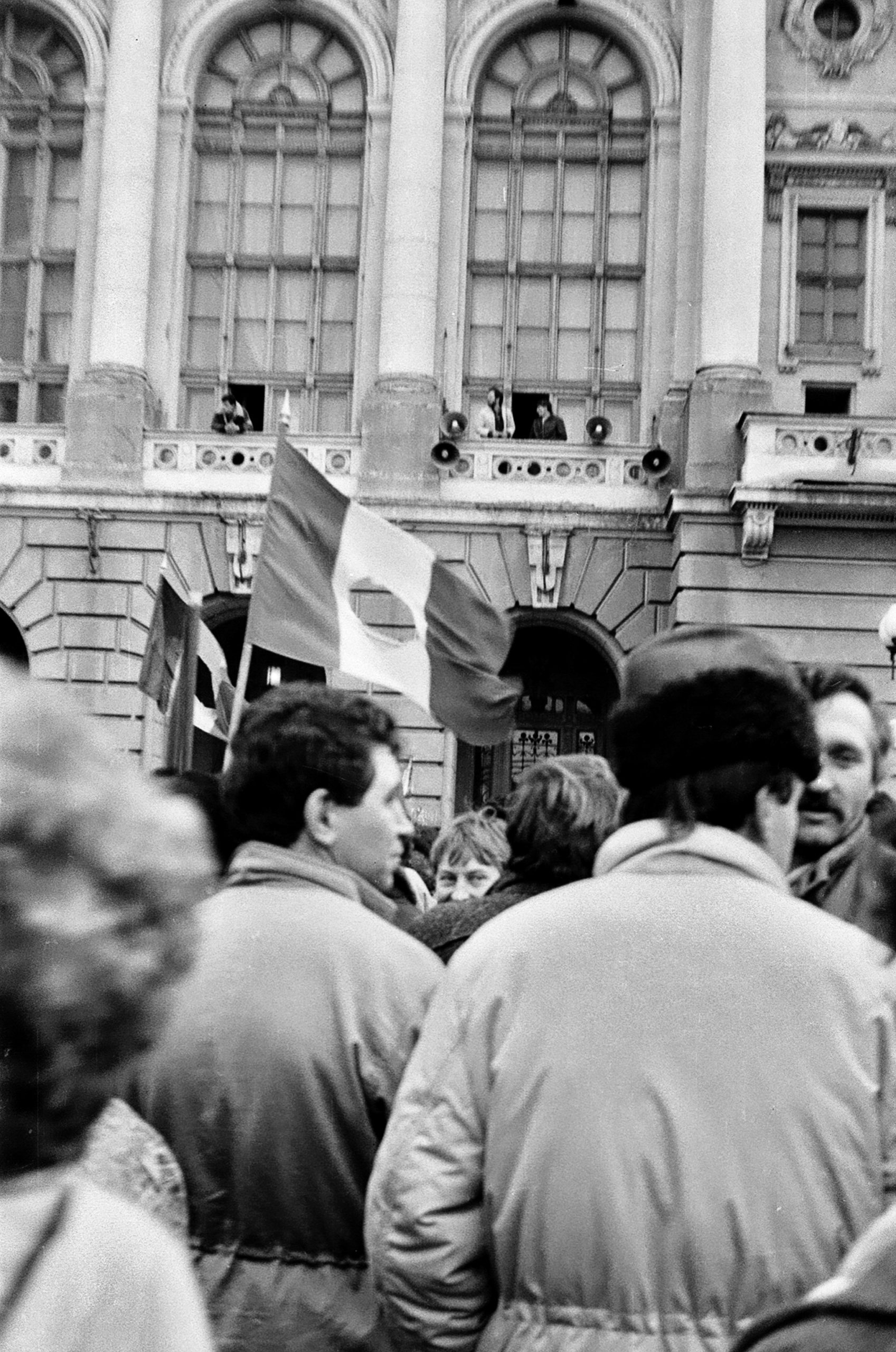 Era ora 12.00, cu opt minute înainte ca Ceauşescu să decoleze cu avionul, când Mircea Bradu iese pe balcon şi anunţă „La cumpăna acestei zile, declarăm Oradea oraş liber”. Toate aceste momente cutremurătoare, rupte azi parcă dintr-un film, au fost imortalizate de un poştaş orădean, Lazău, care ne-a oferit rola de film din aparatul său de fotografiat cu care a ieşit în Piaţa Unirii. Cele 15 fotografii care au fost realizate atunci în Piaţa Unirii şi pe Podul Ferdinand, surprinzând realităţile Revoluţiei orădene. Am reuşit, cu un efort considerabil, să digitalizăm şi să prelucrăm aceste fotografii – document.
